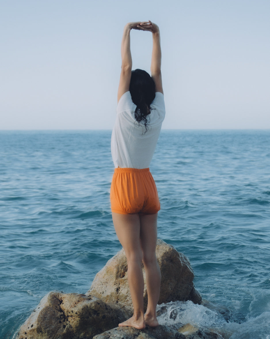 OMUA Shorts are specially designed for Iyengar yoga practice, with a timeless bloomer shape that offers full freedom of movement and gentle support in every āsana. Handmade locally in Barcelona under fair working conditions, they embody transparency, sustainability, and care in every detail.